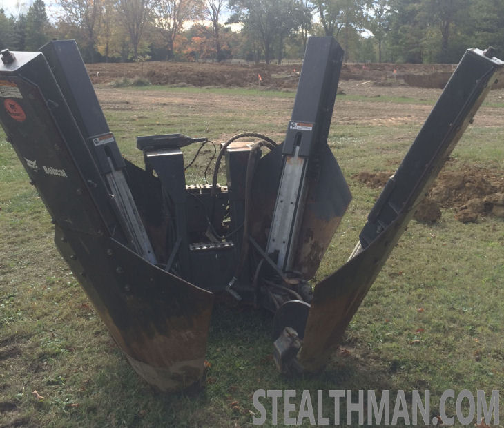the bobcat. Don't take chances on a home made unit where it is cheaply made or one of the rusty old "needs work" spades listed on EBay. This was used with a Takeuchi 150 and 773 bobcat. Feel free to come see the unit operate in person. It has